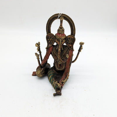 9"H Tribal Brass Ganesh riding Mushik / Mouse
