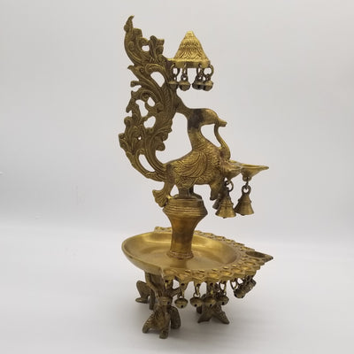 9.5"L Peacock Inspired Solid Brass Temple Lamp