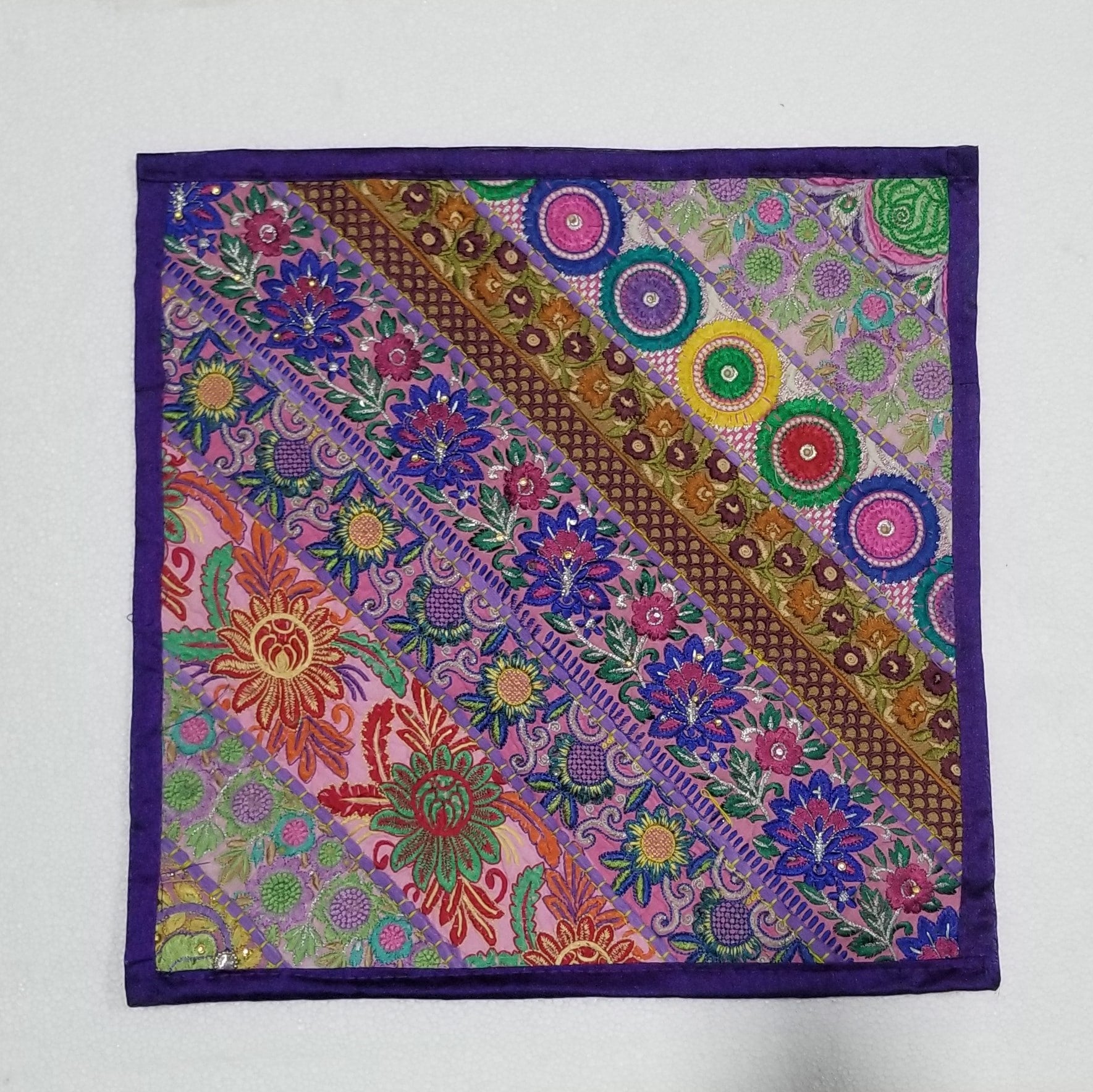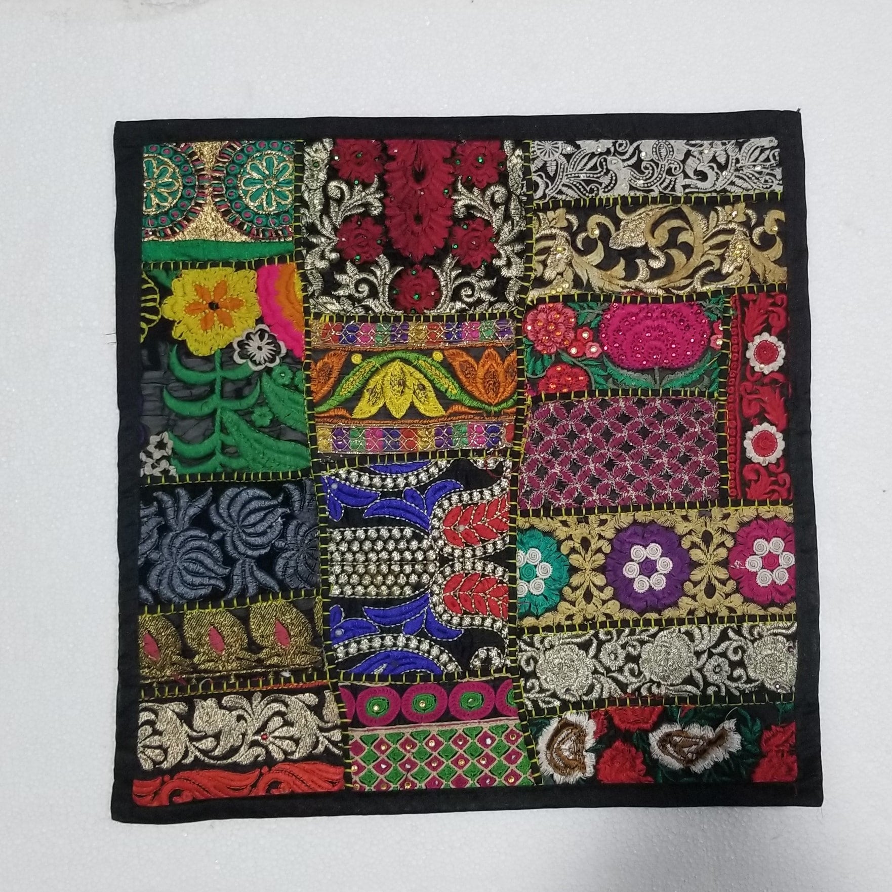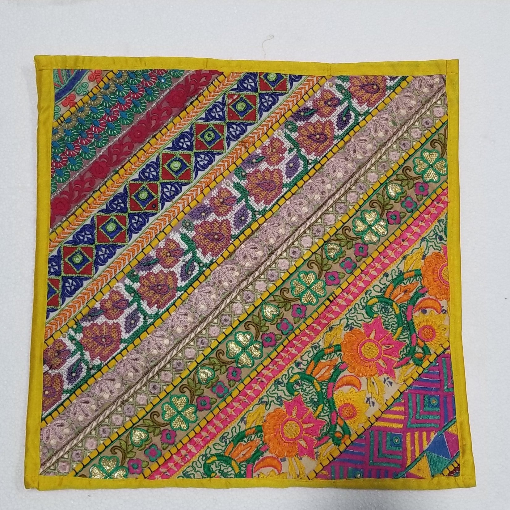 16" x 16" Handwoven and embroidered Pure Cotton Pillow Covers in Kanta assorted designs and colors #handwoven #handmade #cotton #embroidered #handembroidered #lace #thread #table #runner #tablerunner #pillow #pillows #pillowcovers